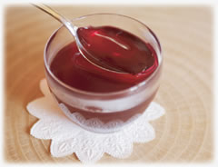 | 材料(プリン型2個分) 山葡萄ジュース・・・100ml 水・・・100ml 粉寒天・・・2g 水(粉寒天を溶かす用)・・・50mg さとうきび粗糖(上白糖でも可)・・・大さじ2 |